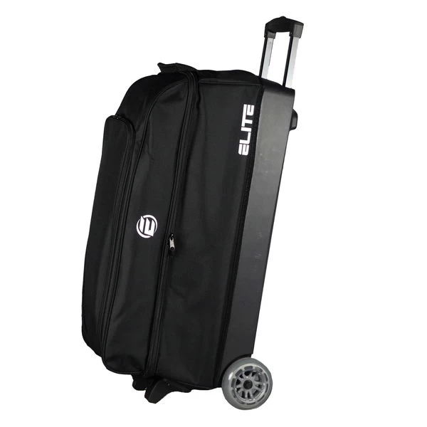The Elite 3 Ball Roller bag was designed with simplicity in mind without sacrificing craftsmanship. The bag base is sturdy and securely holds up to 3 bowling balls in place. The shoe compartment will hold up to 2 pairs of men’s size 15 shoes along with bowling accessories. This streamlined bag utilizes great wheels and a retractable handle to offer the ideal bowling bag to meet the needs of a bowler.