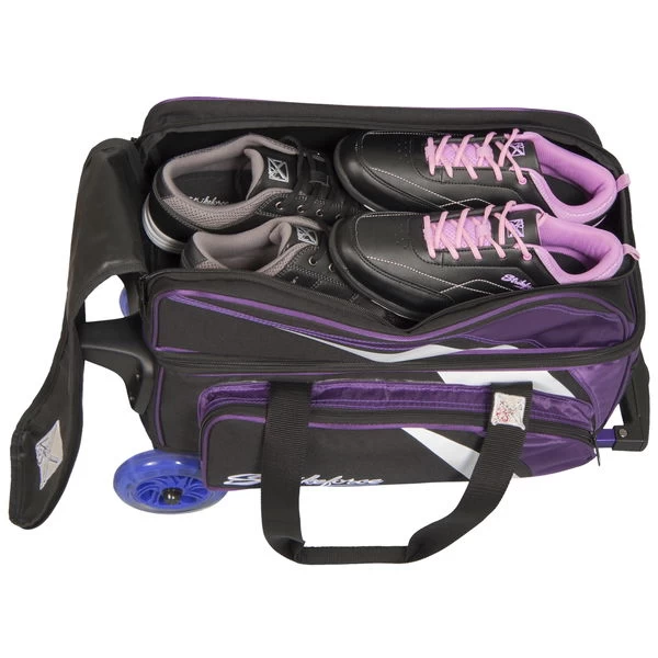 The KR Cruiser Smooth Double Roller Purple/White/Black bowling bag has quality features to offer any bowler. It has 4.5″ Smooth KRuze wheels that give it an ultra quiet and smooth roll, as well as a large shoe compartment that can hold up to two pairs of shoes. Those are just a few of the many attributes this bowling bag has to offer.
