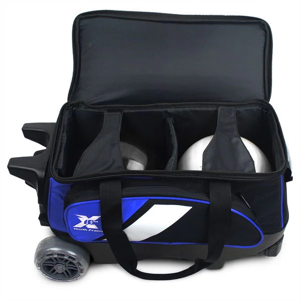 The Tenth Frame Deluxe Double Roller features premium materials and quiet wide urethane wheels for a smooth ride. The spacious shoe compartment has room for up to mens size 15. The full length side accessory zipper compartment provides storage for all your accessories!